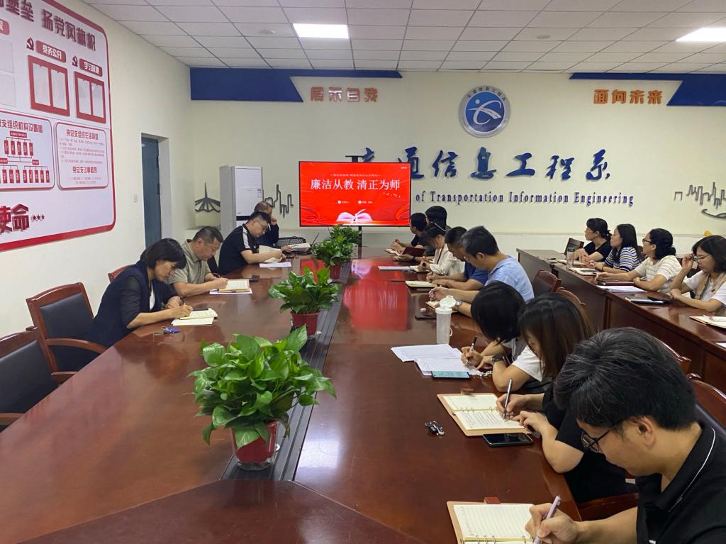 为持续推动清廉学校建设,不断加强党员教师的党性修养和廉洁自律,落实党的二十届三中全会精神,弘扬教育家精神,加强新时代高素质专业化党员教师队伍建设,2024年9月25日中午,交通信息工程系党总支召开了“廉洁从教,清正为师”主题党日活动。会议由党总支书记王世晟主持,全体党员参加了本次活动。
