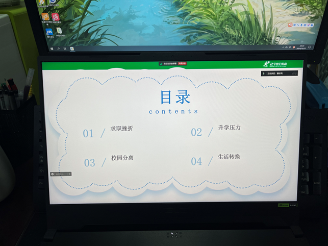 针对即将面临就业和升学压力的实习生,则通过线上讲座给他们提供了有效的情绪管理和应对策略。曹老师详细讲解了求职挫折、升学压力、校园分离、生活转换等常见心理问题,并分享了心理咨询、心理疏导等干预方法和技巧。这些讲座不仅提高了学生对心理问题的识别能力,还为他们提供了有效的应对策略。