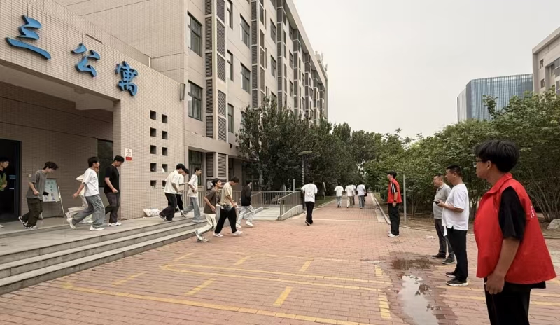 演练以宿舍楼突发火情为模拟背景,重点强化学生逃生技能。中午12时30分警报响起后,全体学生在辅导员指引下迅速进入应急状态,严格遵循“低姿前行、沿墙撤离”的规范动作,按楼层分批有序疏散,快速抵达2号餐厅前广场集结点。赵运成结合真实火灾案例开展安全教育,系统讲解火场避险要点、逃生路线规划及消防器材使用方法,强调“冷静应对、科学自救”的核心原则。
