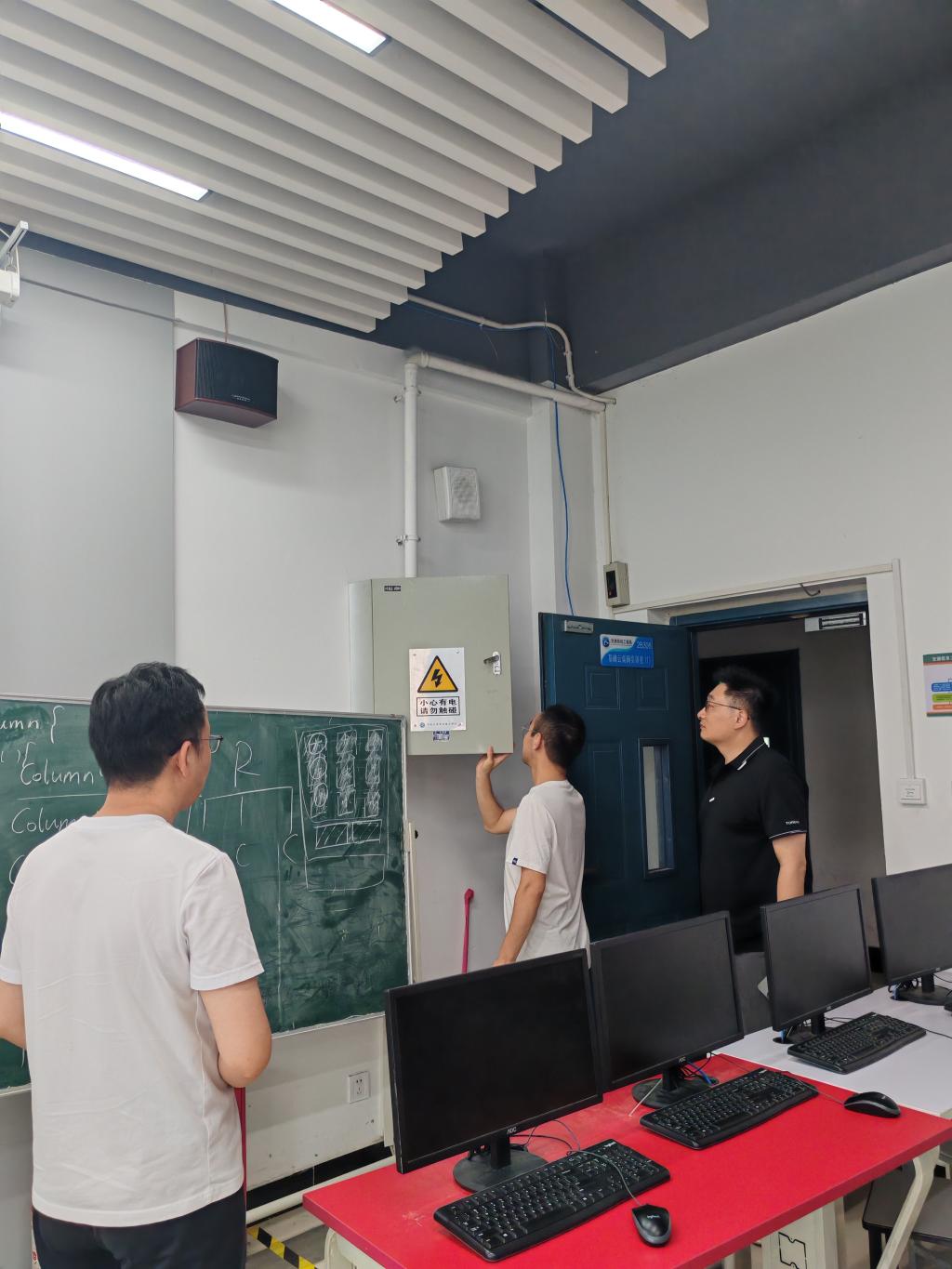 学期临近尾声,为确保暑假期间校园安全稳定,杜绝安全事故隐患,并积极配合学校消防设施检修工作,交通信息工程系于近期开展了期末实训室及教室安全专项检查、封存及灭火器集中送检工作,为安全度过假期加上“双保险”。