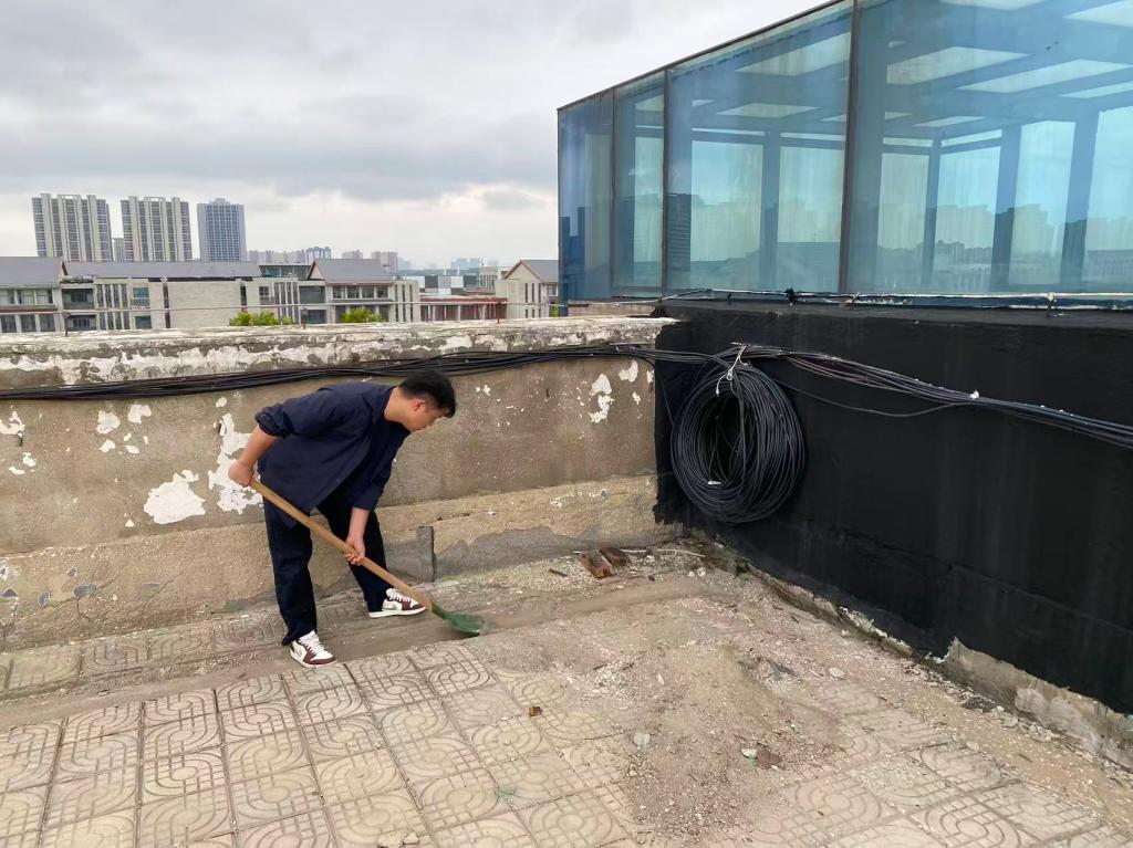 针对近期发布的特大暴雨预警,检查小组重点查看了防水、排水设施的工作情况,全面排查各类渗水、漏雨隐患,并对楼顶排水通道进行了彻底清理和疏通,确保雨水排放畅通。同时,小组对实训室内的电气设备、门窗密封及应急物资储备等情况也逐一检查,杜绝暴雨可能引发的次生安全事故。