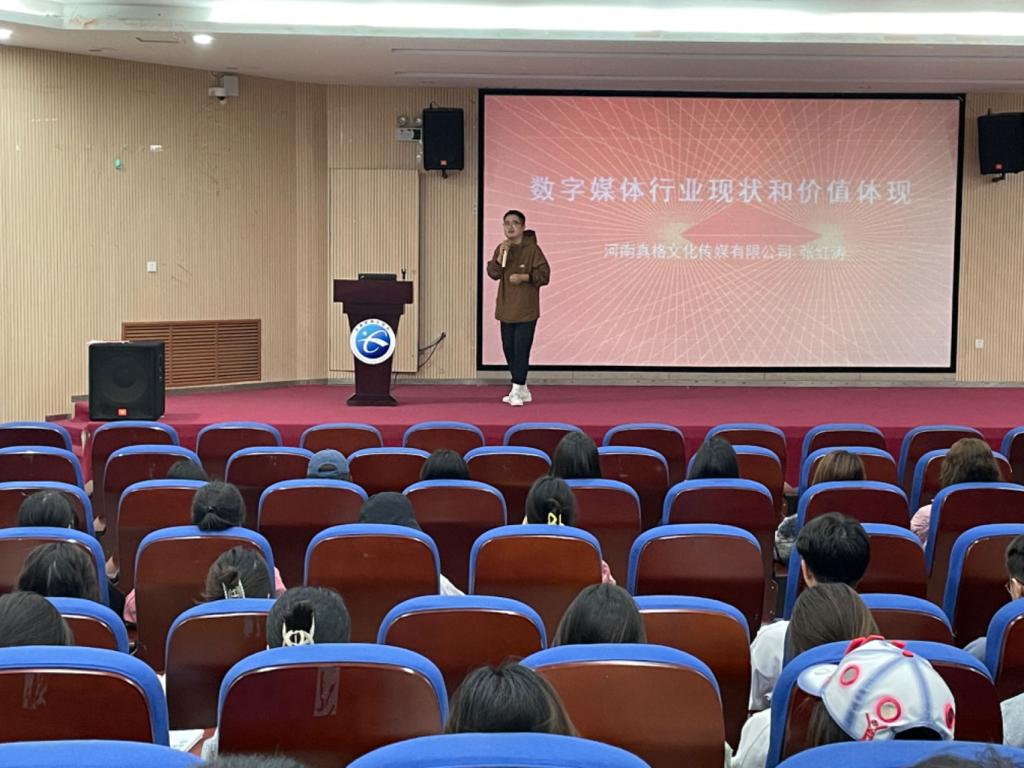 行业发展认知讲座专由河南真格文化传媒有限公司项目经理张红涛主讲。张经理介绍了公司概况和企业文化,以新媒体短视频、二三维、三影视三个模块与公司制作的优秀视频案列相结合进行讲解,从数字媒体以及自媒体行业解析与发展前景、就业所要掌握基本内容、个人经历和就业经验以及各大院校校企合作内容与比赛经历这四个方面与同学们进行了分享交流,使同学们能够尽早正确认识自己,把握方向,规划人生,树立职业生涯规划意识,更好地了解和掌握就业市场对数字媒体类专业人才的需求。