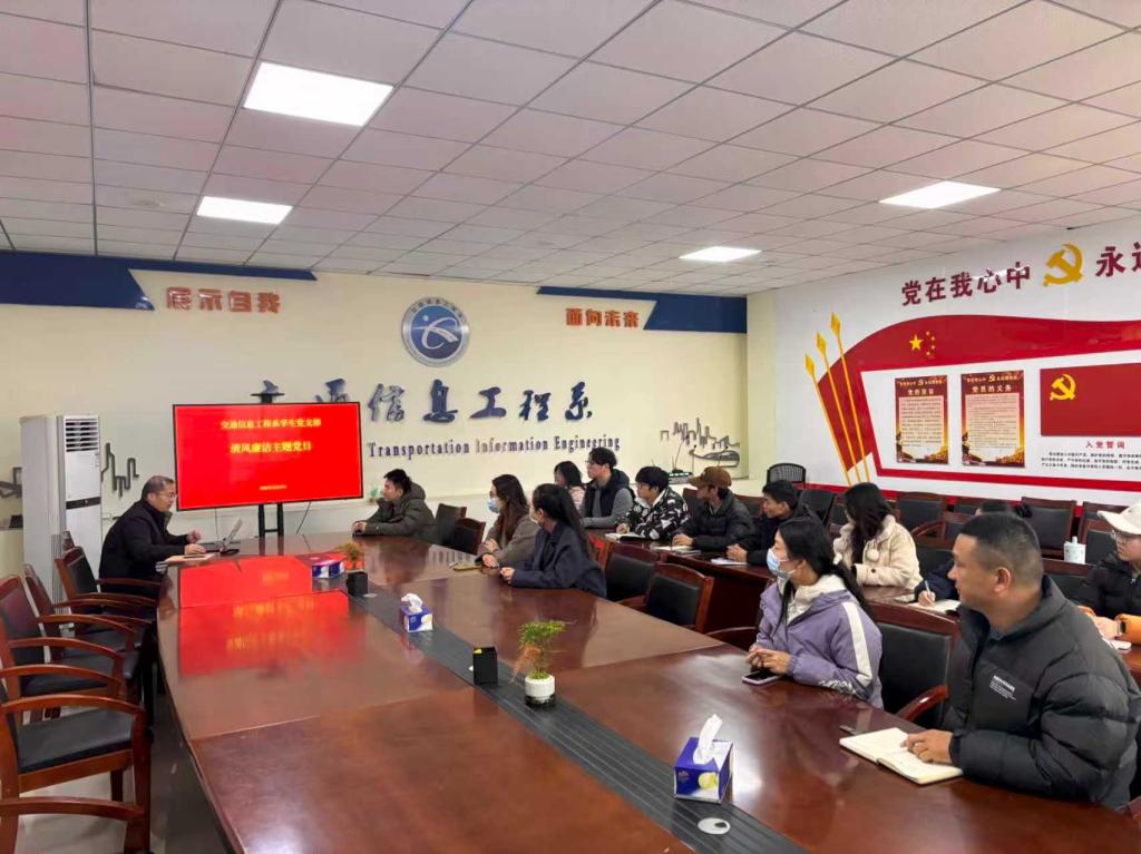 为深入推进廉洁文化建设,强化师生党员党性修养和纪律意识,2025年12月17日14:30,交通信息工程系学生党支部在党员之家开展“清风廉洁”主题党日活动,全体教师党员及入党积极分子参加。