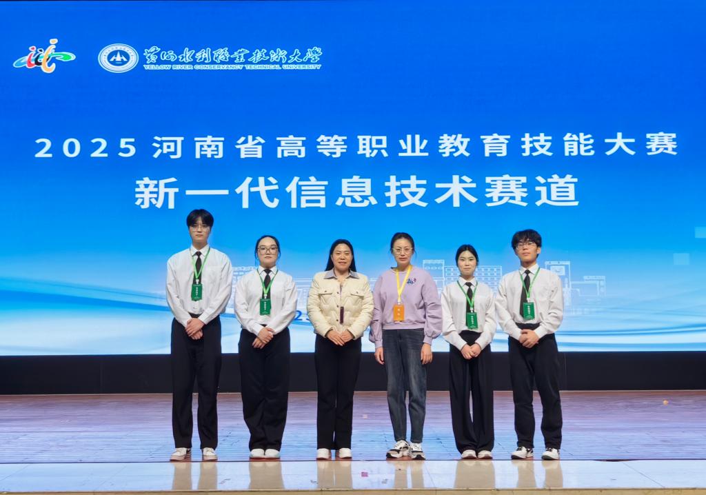 12 月 21 日,由河南省教育厅主办、黄河水利职业技术大学承办的 2025 年河南省高等职业教育技能大赛新一代信息技术赛道圆满落幕。我系参赛团队从全省 85 支队伍中脱颖而出,勇夺金奖,并成功取得下一年世界职业院校技能大赛参数资格。