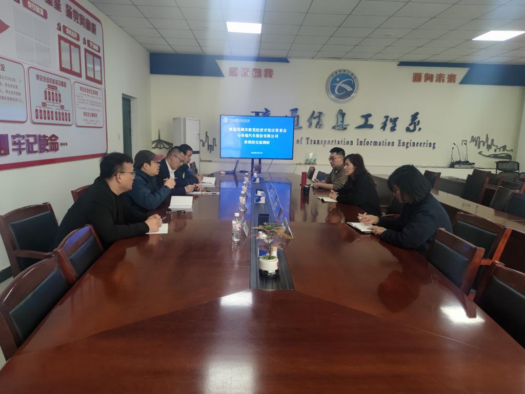 3月31日,芜湖市新芜经济开发区管委会副主任翟波涌,奇瑞汽车股份有限公司人事经理吴王华、校企合作负责人储伟强一行到访学校交通信息工程系,双方围绕校企协同育人、人才供需对接等议题进行深入交流。
